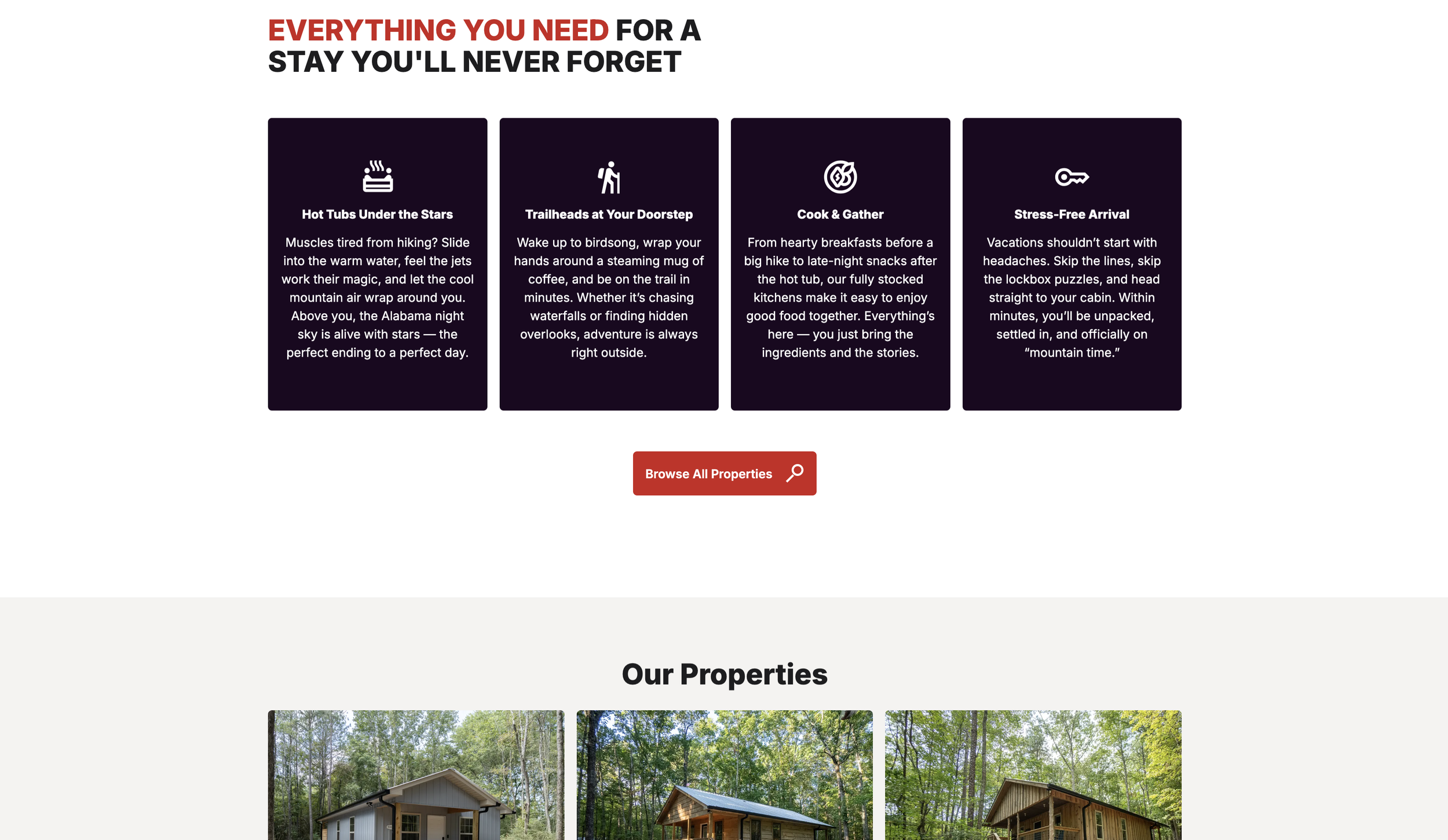 So when they came to us about their cabin rental business in Fort Payne, Alabama, they came not just for a website, but for a brand experience that would do justice to the place they were building.
